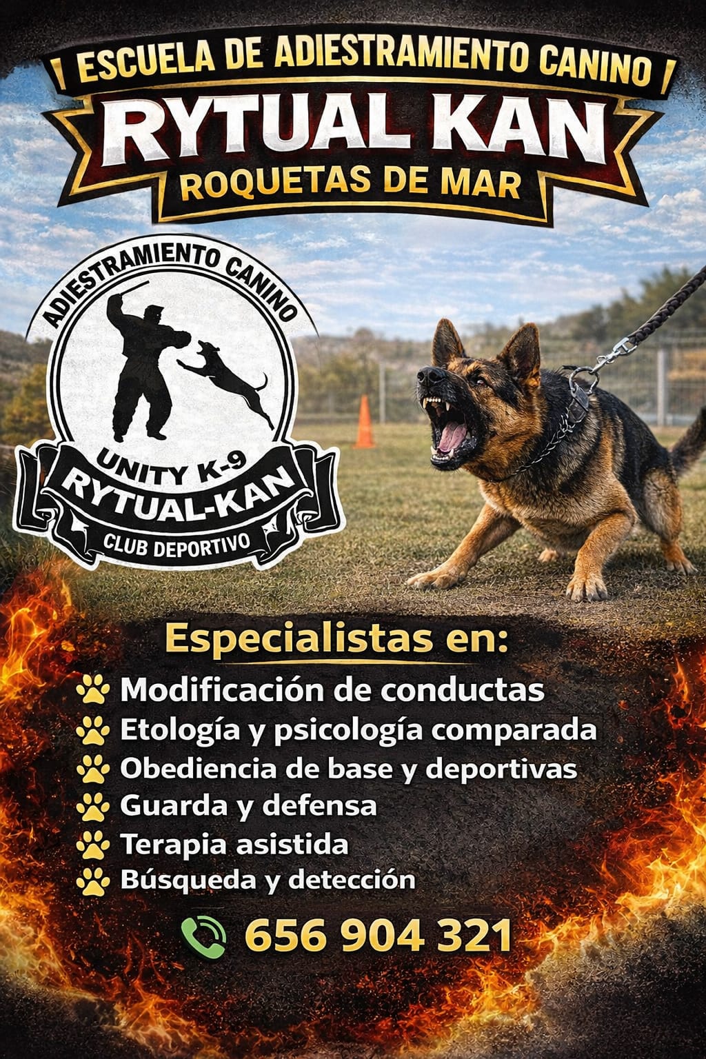Los cursos de adiestramiento se basan en condicionar nuestros perros en un estilo de vida sano y rutinario, por lo que las clases son a diario de lunes a jueves en las instalaciones de Rytual Kan y los viernes hacemos trabajos en zona real (paseos por la ciudad)
